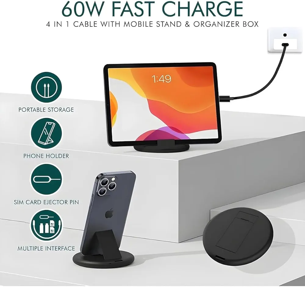 USB to USB-C charging cable adapter kit containing multiple OTG adapters. Designed for versatile use with different cable and device interfaces, along with SIM tools and phone holder.