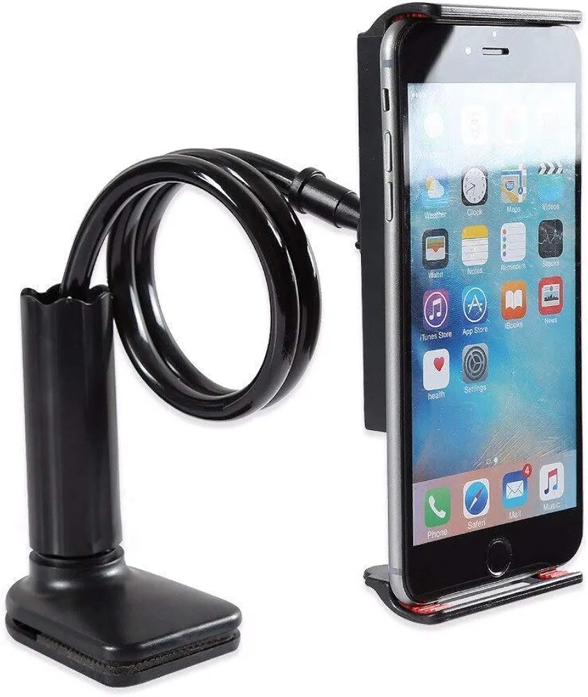 A stable and flexible lazy tower phone holder designed for hands-free viewing at home, office, kitchen, gym, or bedroom. Features a strong spiral clamp with anti-slip silicone lining, secure mounting base, and bendable arms for comfortable viewing angles.